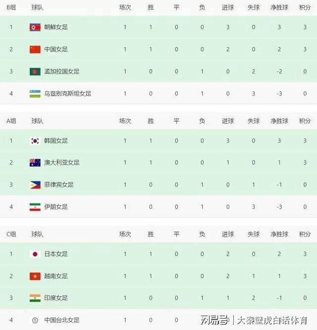 C组:日本女足、越南女足、印度女足、中国台北女足。