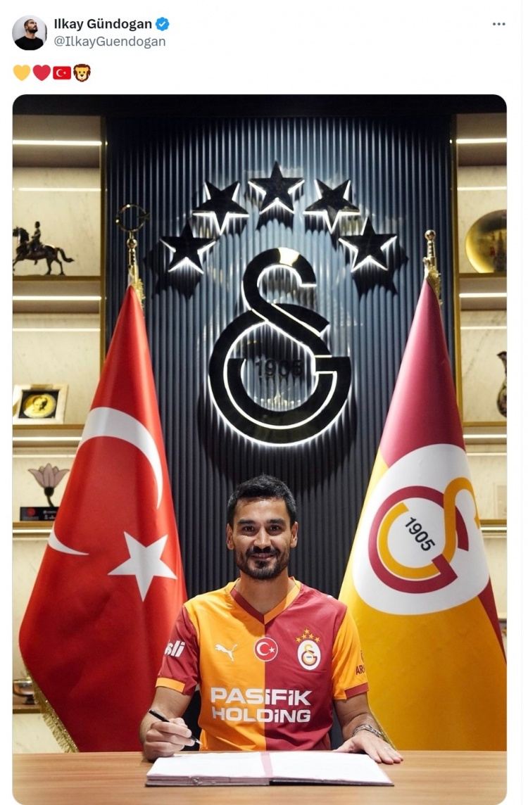 9月3日,前曼城中场京多安以自由转会方式加盟土超球队加拉塔萨雷。球员在社交媒体分享了签约现场照片,并配以代表球队色调的黄红心形符号表达激动之情。